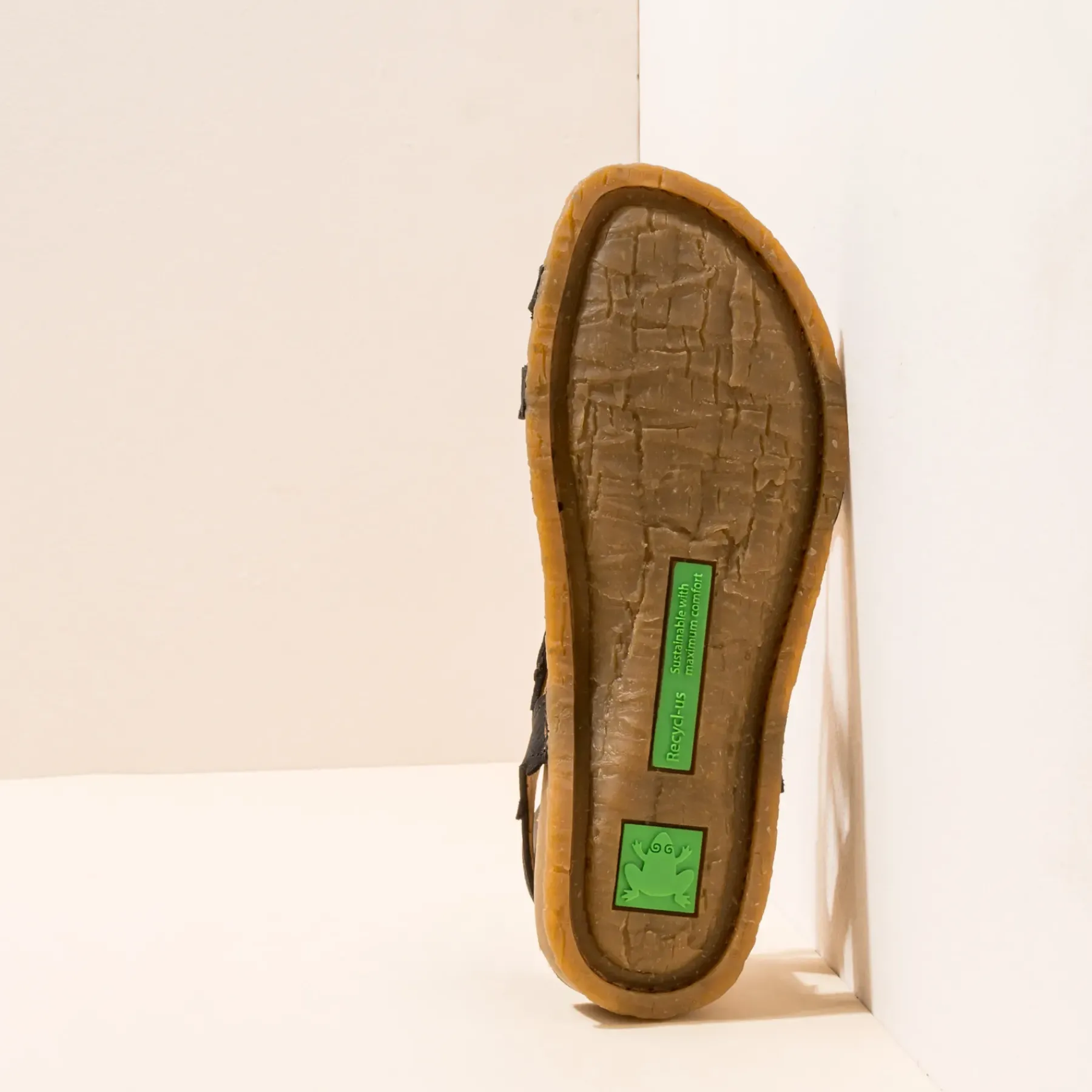 Sandale Qui Combine Une Semelle Et Une Semelle Interieure En Caoutchouc Recycle En Une Seule Piece, Reduisant Ainsi Un Composant Et Facilitant Le Recyclage. Le Design De La Semelle Est Inspire Par Le Tronc Des Palmiers De Lile De Panglao Aux Philippines. Cette Ligne Se Distingue Par Sa Flexibilite. La Mousse A Memoire De Forme Recyclee A Linterieur De La Semelle Offre Un Confort Supplementaire.